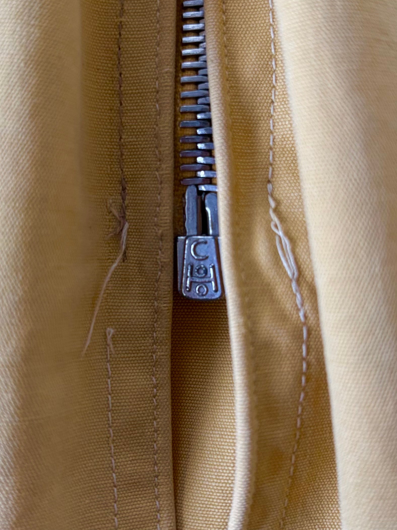 フロントおよびポケットには、ヴィンテージらしいボールチェーンジップを採用。無骨でありながらどこか愛嬌のあるディテールが、ヴィンテージらしさを感じさせてくれます。さらにウエスト部分にはドローコードが付属しており、絞ることでシルエットに変化をつけることが可能。ゆったりとしたボックスシルエットから、メリハリのある着こなしまで楽しめる点も魅力です。